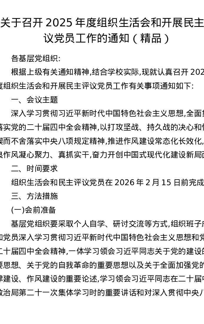 关于召开2025年度组织xxx和开展民主评议党员工作的通知