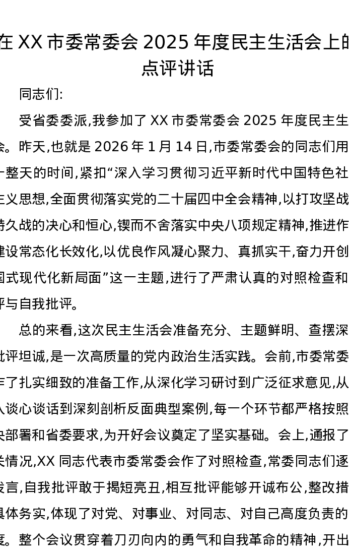 在XX市委常委会2025年度xxxxx上的点评讲话
