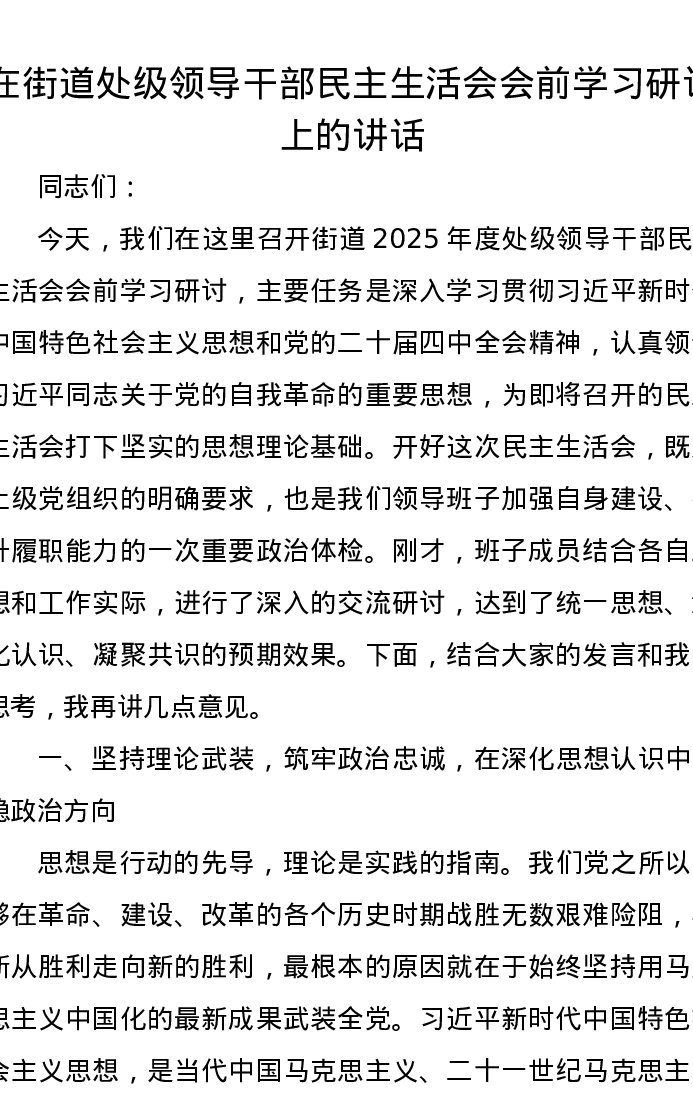 在街道处级领导干部xxxxx会前学习研讨上的讲话