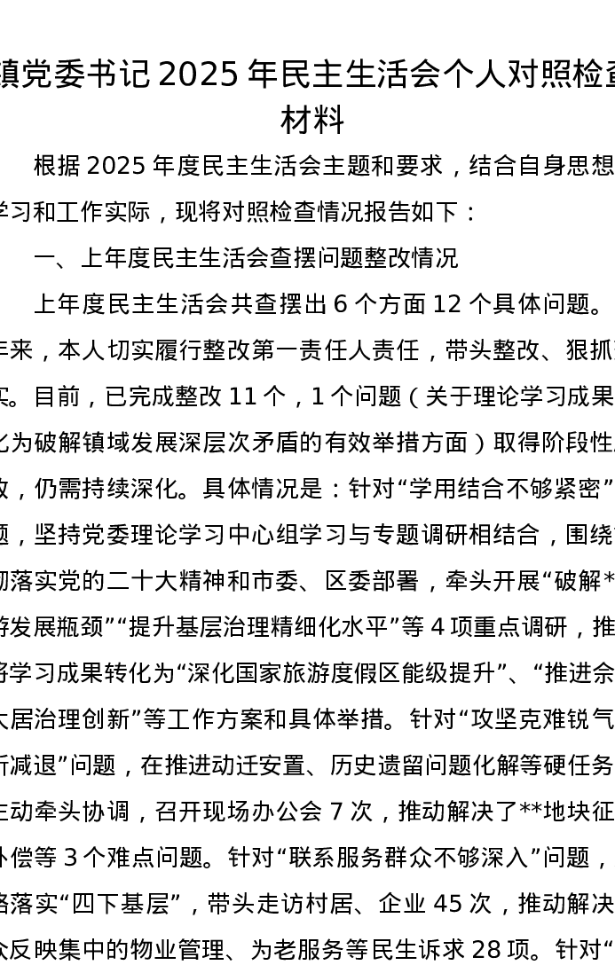 镇党委书记2025年xxxxx个人对照检查材料