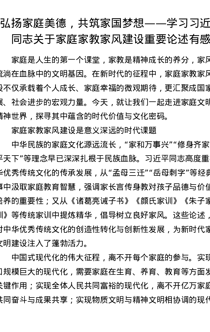 弘扬家庭美德,共筑家国梦想——学习总书记关于家庭家教家风建设重要论述有感