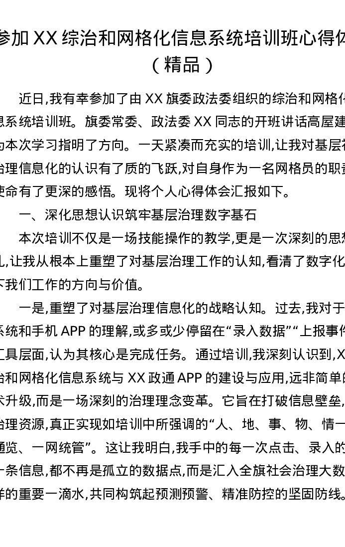 参加XX综治和网格化信息系统培训班心得体会