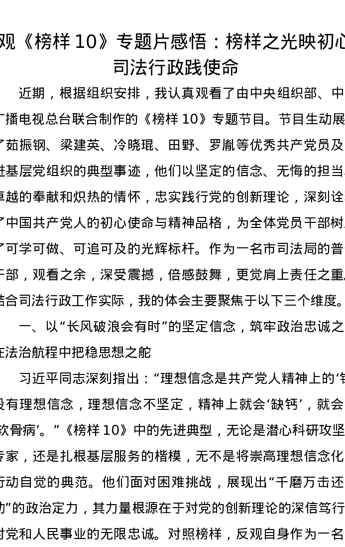 观《榜样10》专题片感悟:榜样之光映初心,司法行政践使命