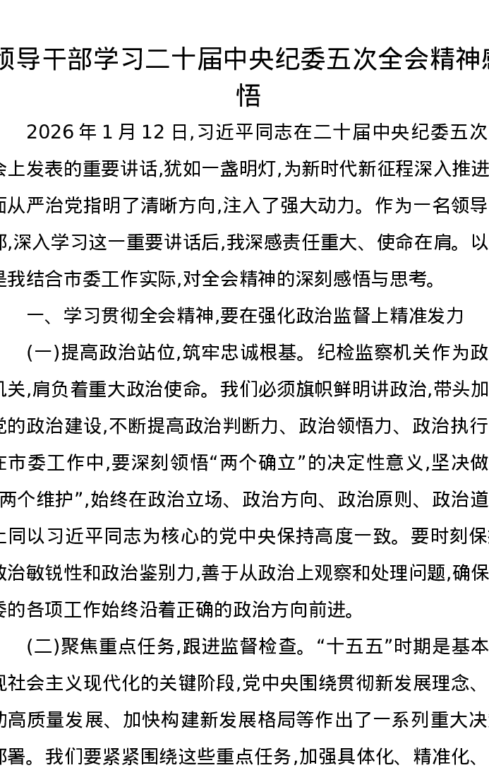 领导干部学习二十届中央纪委五次全会精神感悟