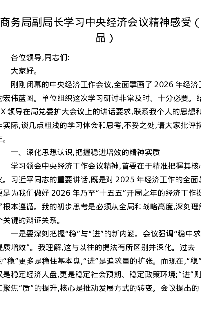 商务局副局长学习中央经济会议精神感受