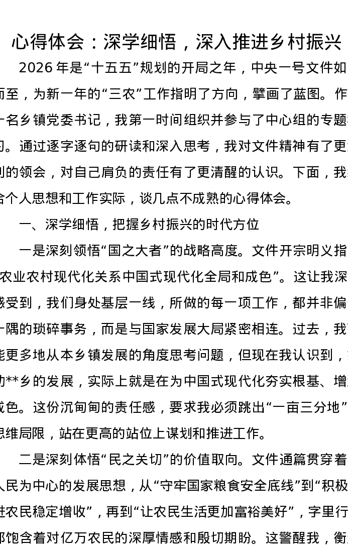 心得体会:深学细悟,深入推进乡村振兴