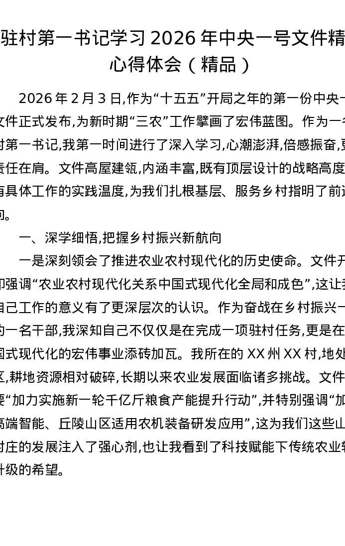 驻村第一书记学习2026年中央一号文件精神心得体会