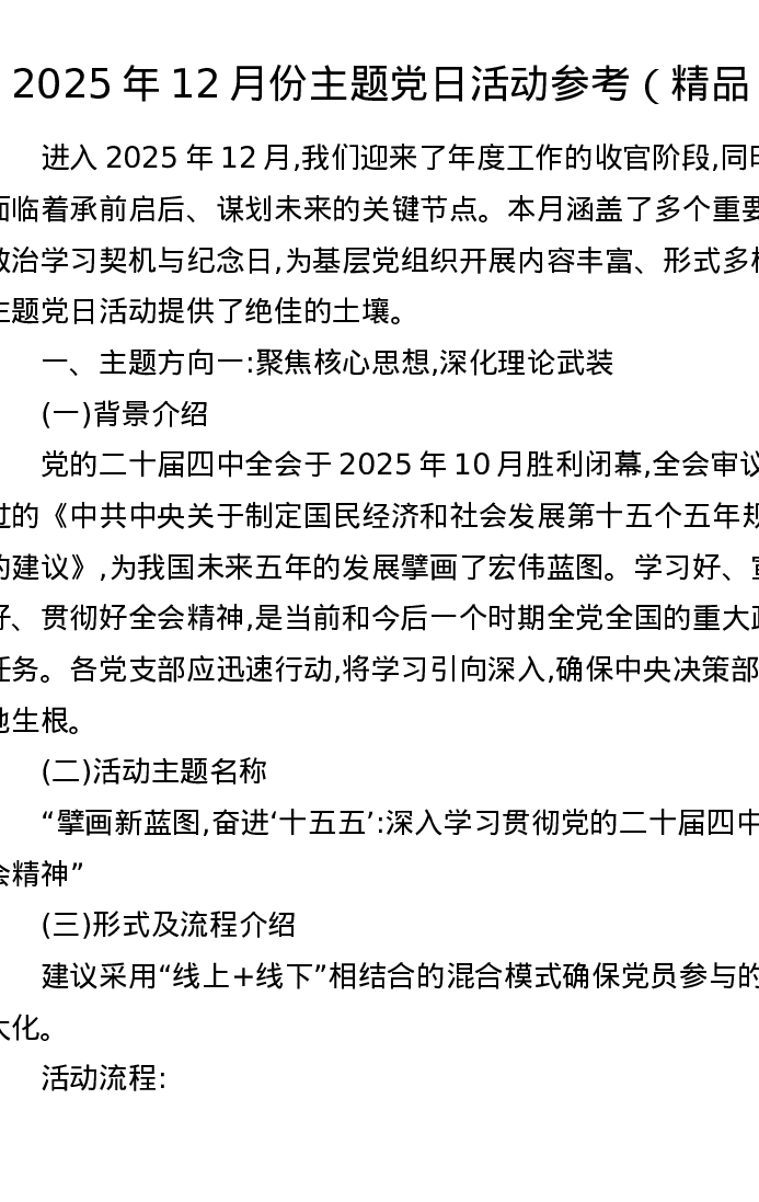 2025年12月份主题党日活动参考