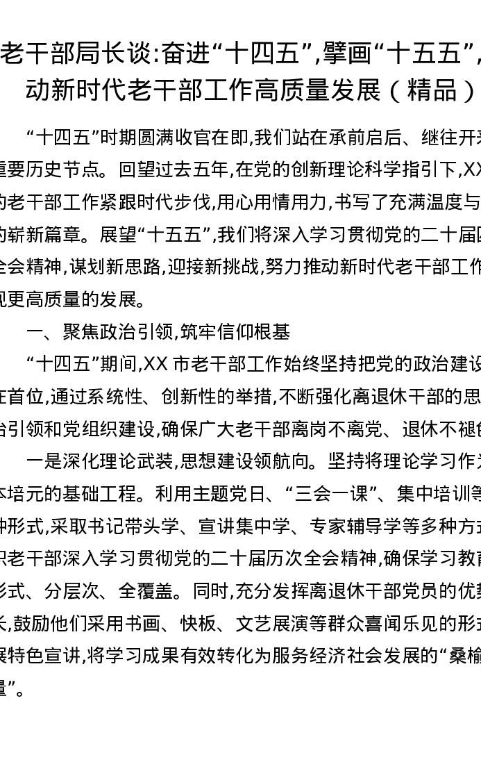 老干部局长谈:奋进十四五,擘画十五五,推动新时代老干部工作高质量发展