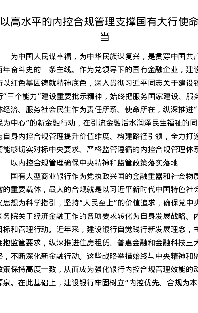 领导讲话:以高水平的内控合规管理 支撑国有大行使命担当