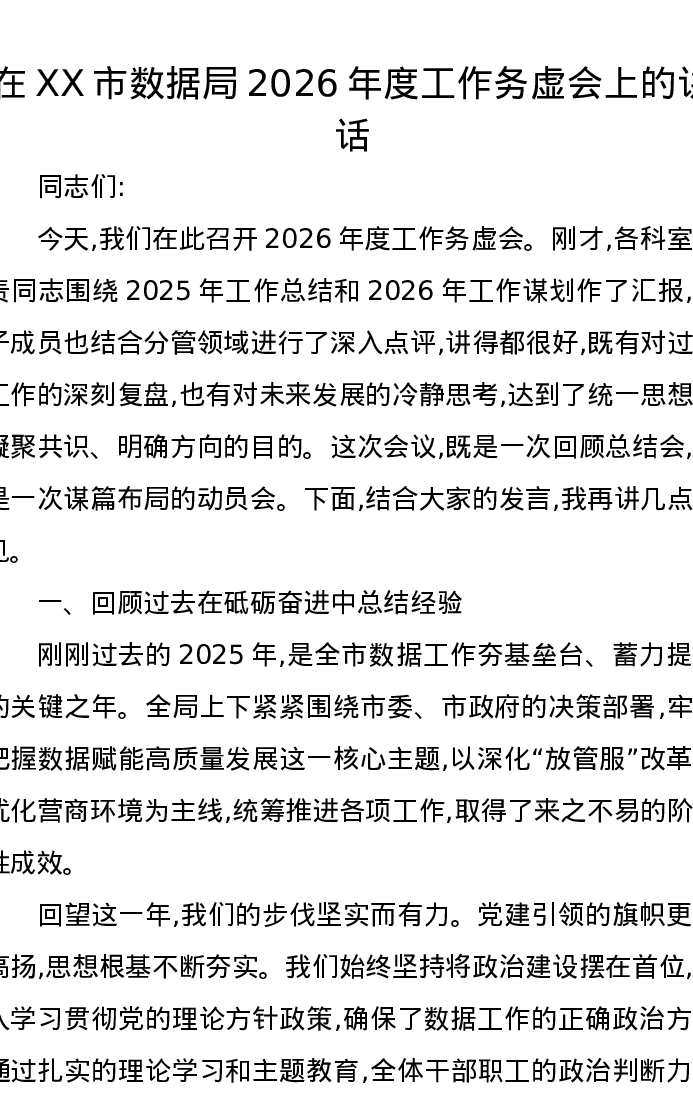 在XX市数据局2026年度工作务虚会上的讲话