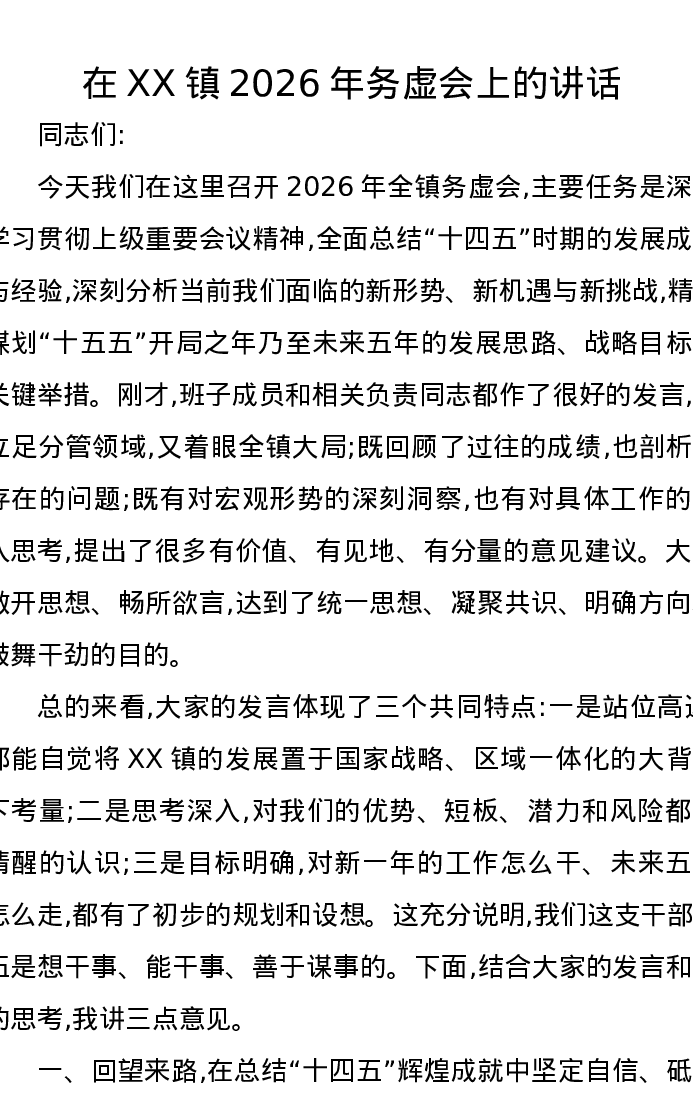 在XX镇2026年务虚会上的讲话(6)