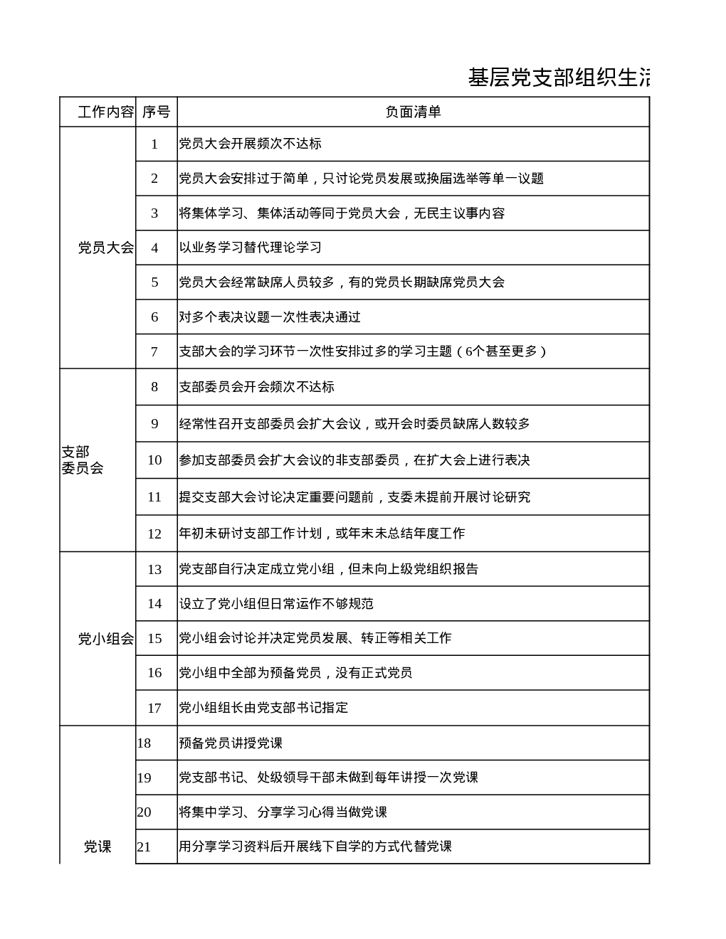 基层党支部组织生活负面清单(含政策解读、工作要求,党建问题参考)