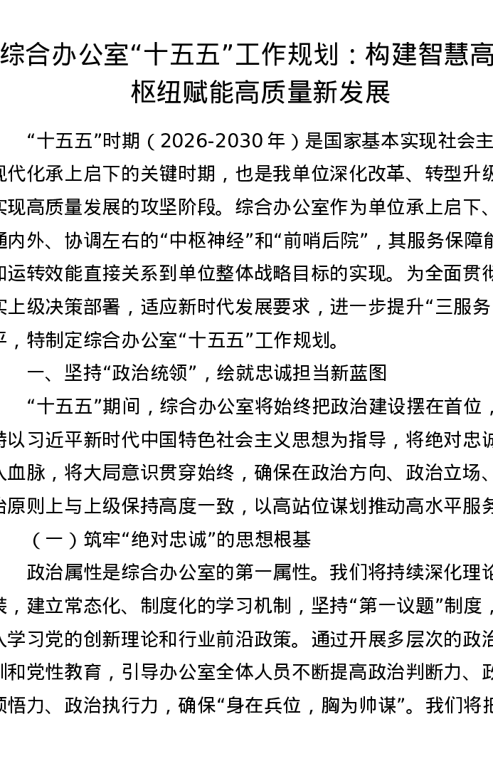 综合办公室十五五工作规划:构建智慧高效枢纽 赋能高质量新发展