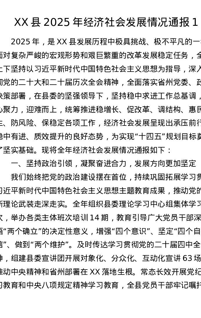 XX县2025年经济社会发展情况通报1
