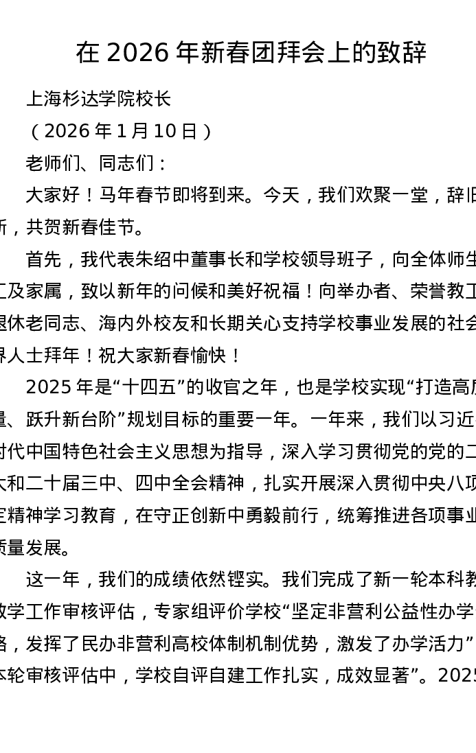 在2026年新春团拜会上的致辞
