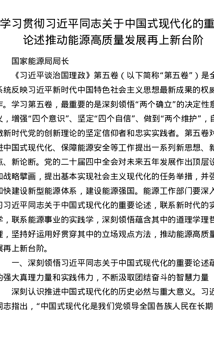 学习贯彻习近平总书记关于中国式现代化的重要论述发言:推动能源高质量发展再上新台阶
