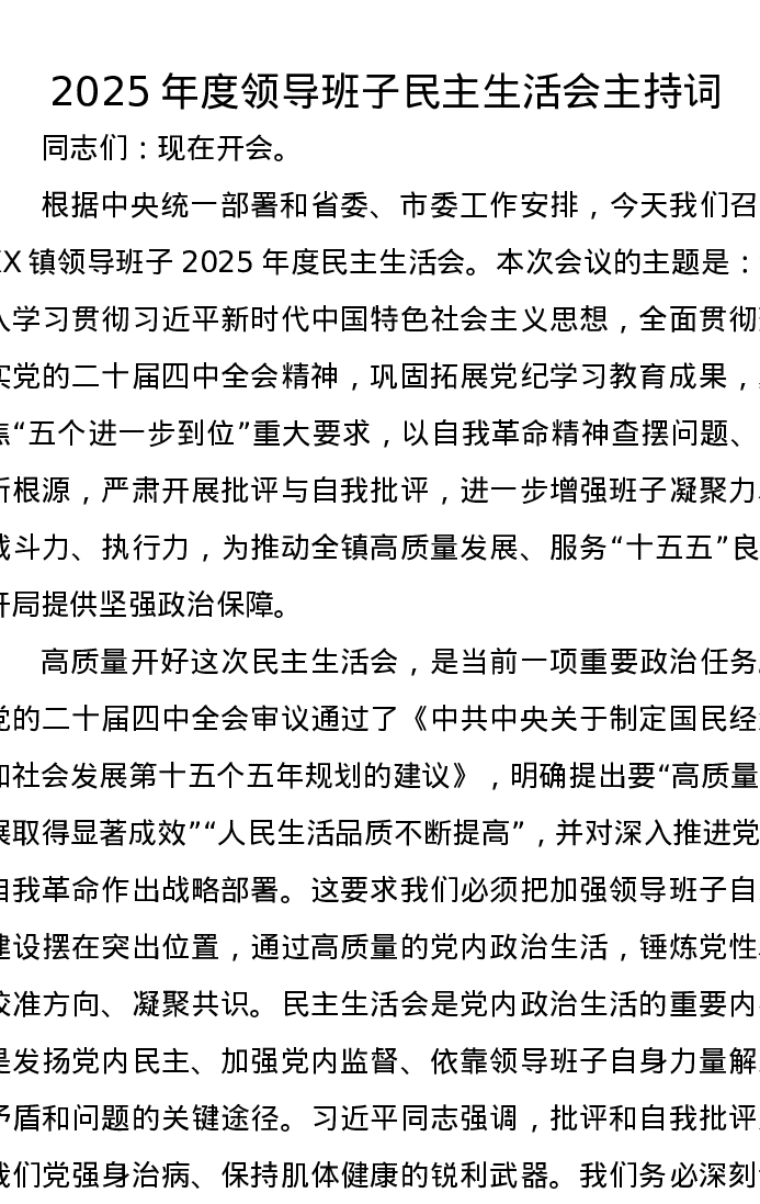 2025年度领导班子xxxxx主持词