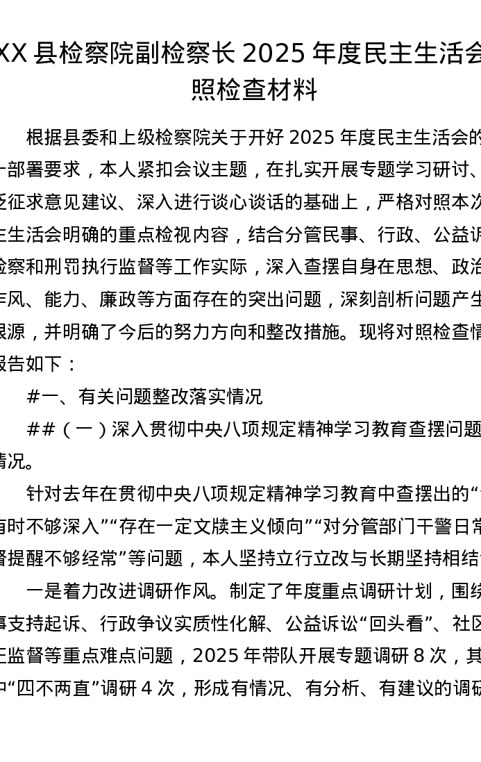 XX县检察院副检察长2025年度xxxxx对照检查材料(6628字)