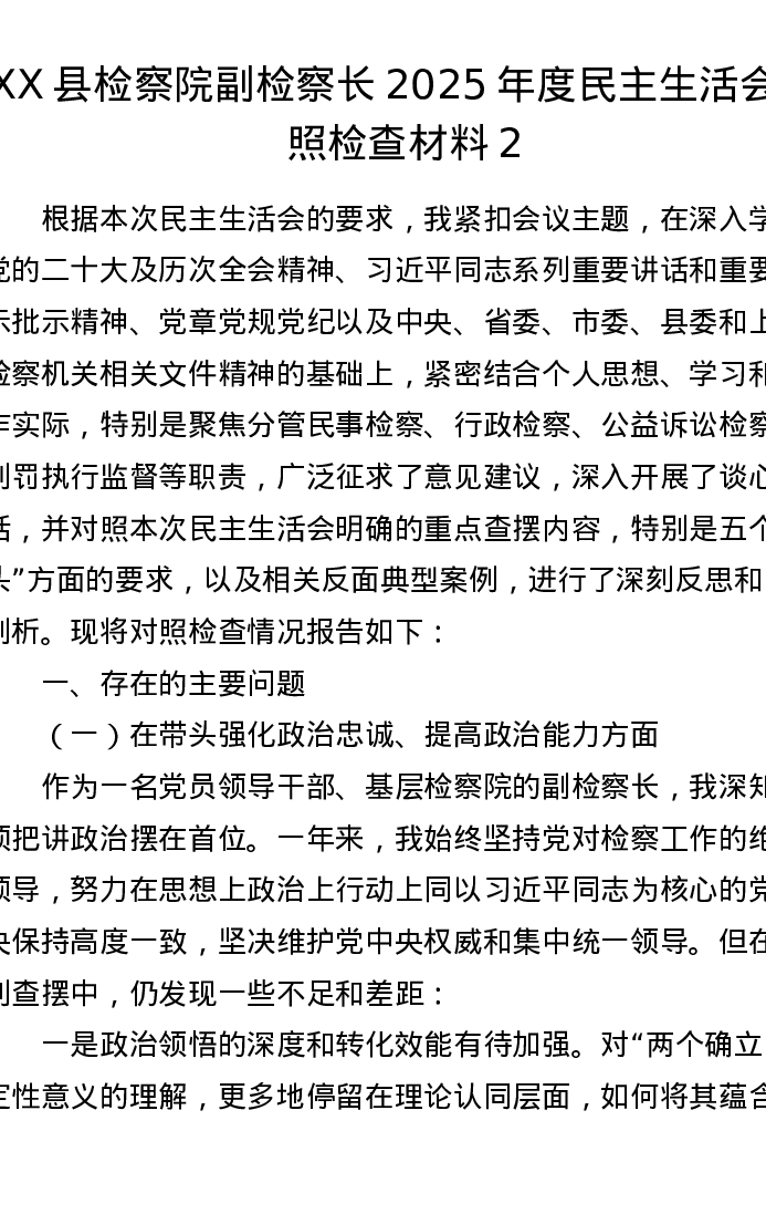 XX县检察院副检察长2025年度xxxxx对照检查材料2