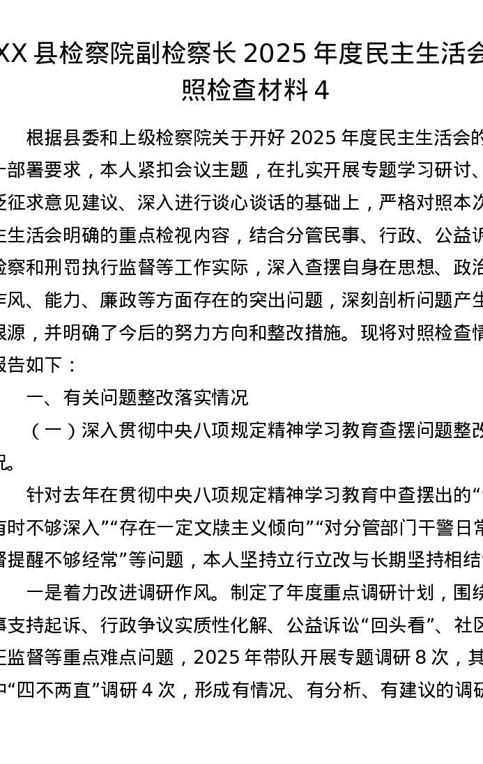 XX县检察院副检察长2025年度xxxxx对照检查材料4