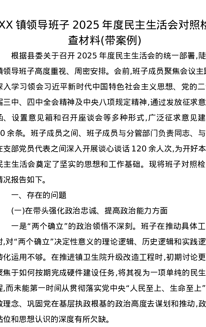 XX镇领导班子2025年度xxxxx对照检查材料(带案例)_3