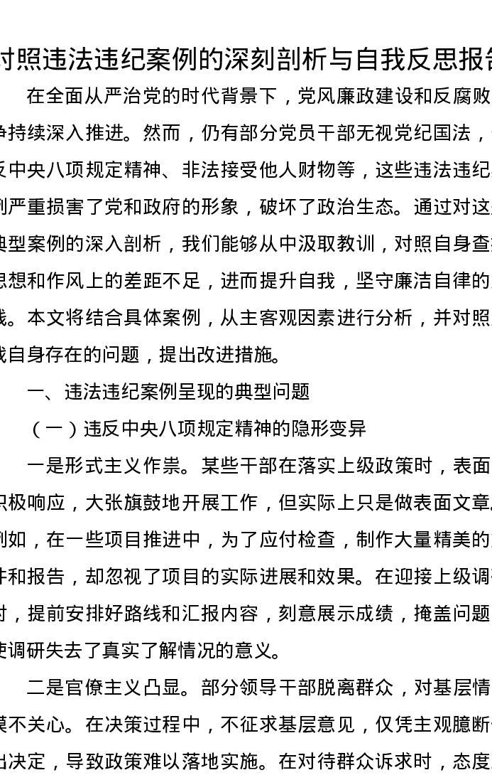 对照违法违纪案例的深刻剖析与自我反思报告