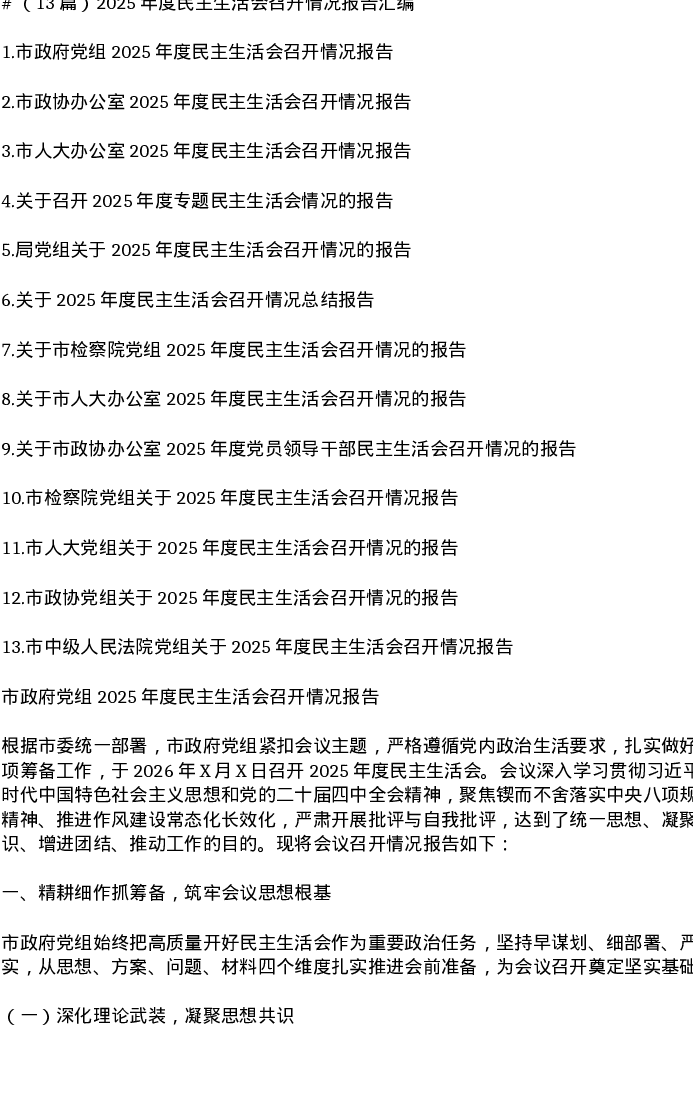 汇编:2025年度xxxxx召开情况报告13篇