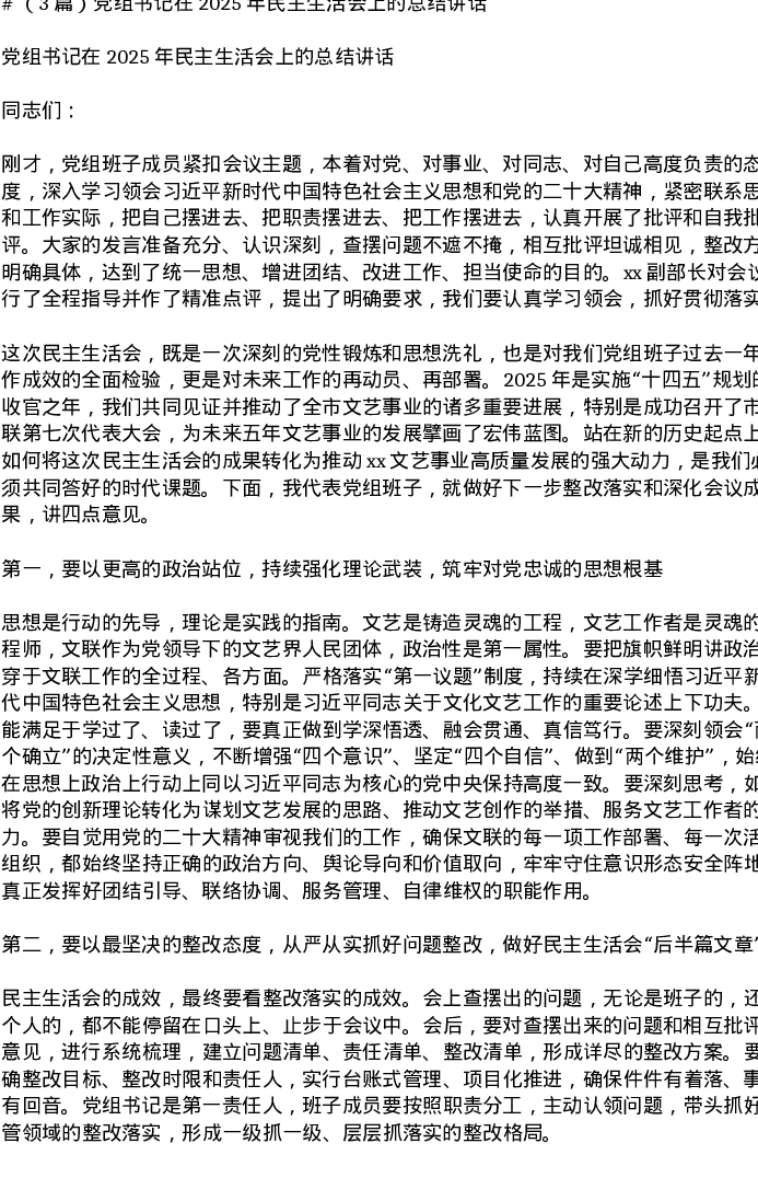 汇编:党组书记在2025年xxxxx上的总结讲话3篇