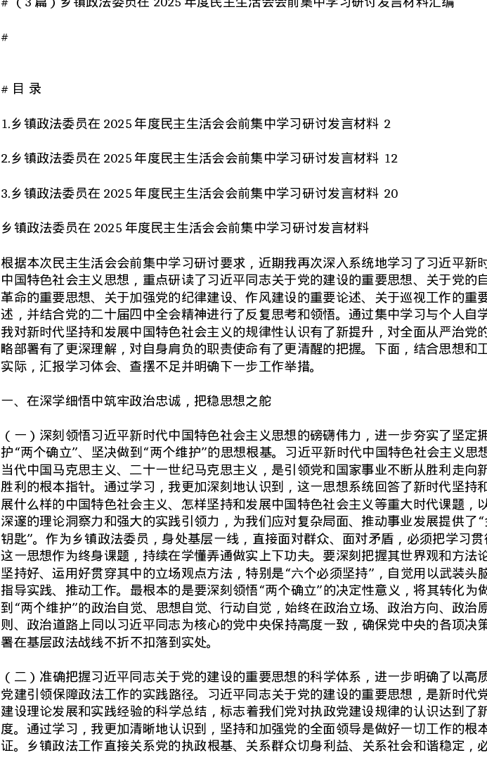 汇编:乡镇政法委员在2025年度xxxxx会前集中学习研讨发言3篇