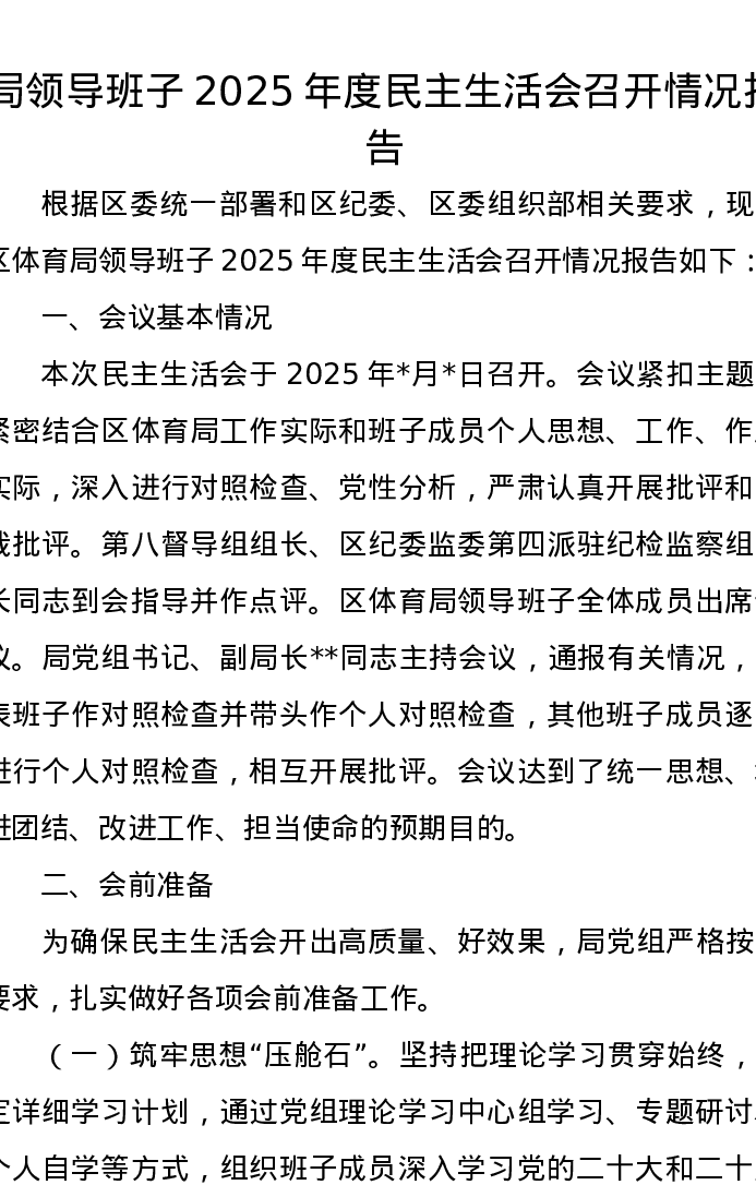 局领导班子2025年度xxxxx召开情况报告