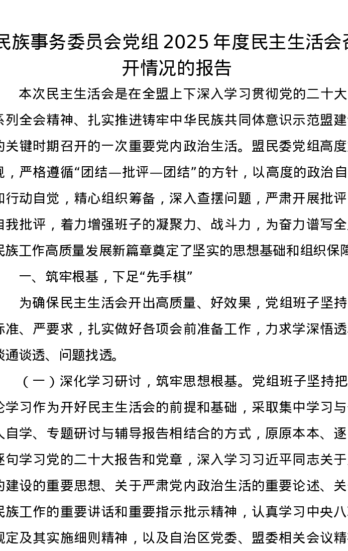 民族事务委员会党组2025年度xxxxx召开情况的报告