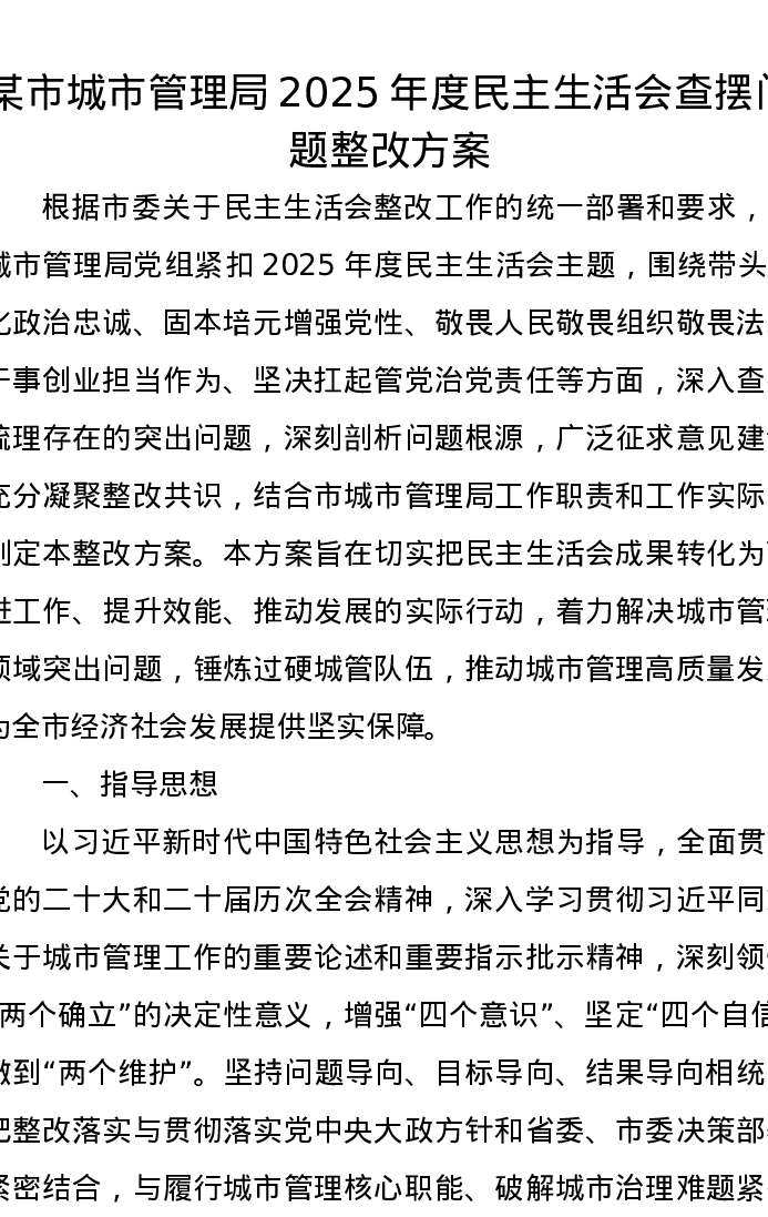 某市城市管理局2025年度xxxxx查摆问题整改方案