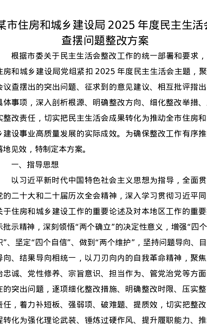某市住房和城乡建设局2025年度xxxxx查摆问题整改方案