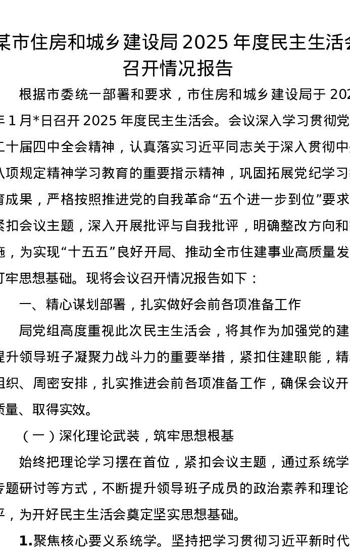 某市住房和城乡建设局2025年度xxxxx召开情况报告