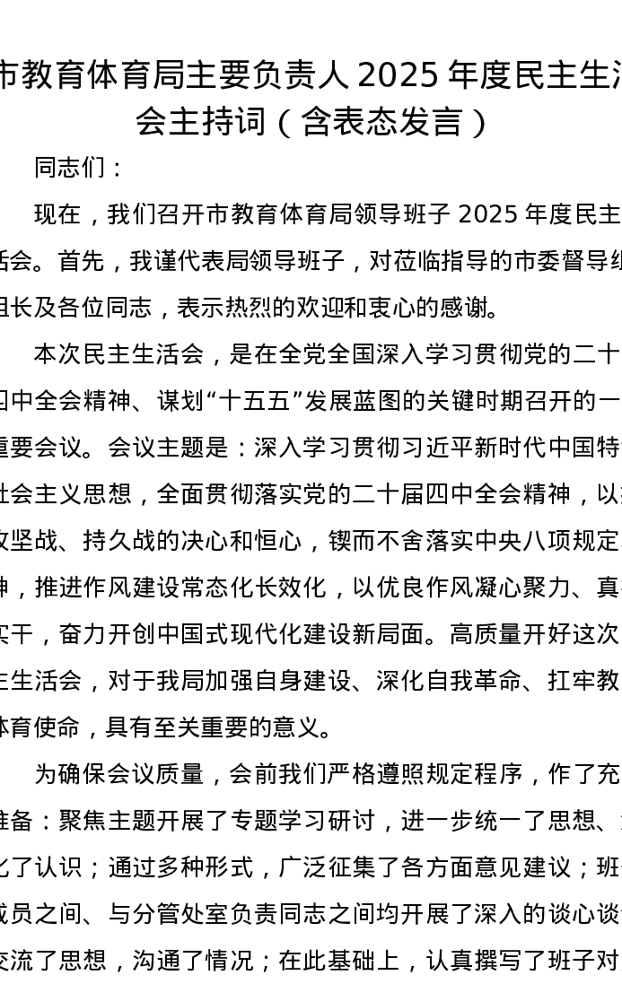 市教育体育局主要负责人2025年度xxxxx主持词(含表态发言)