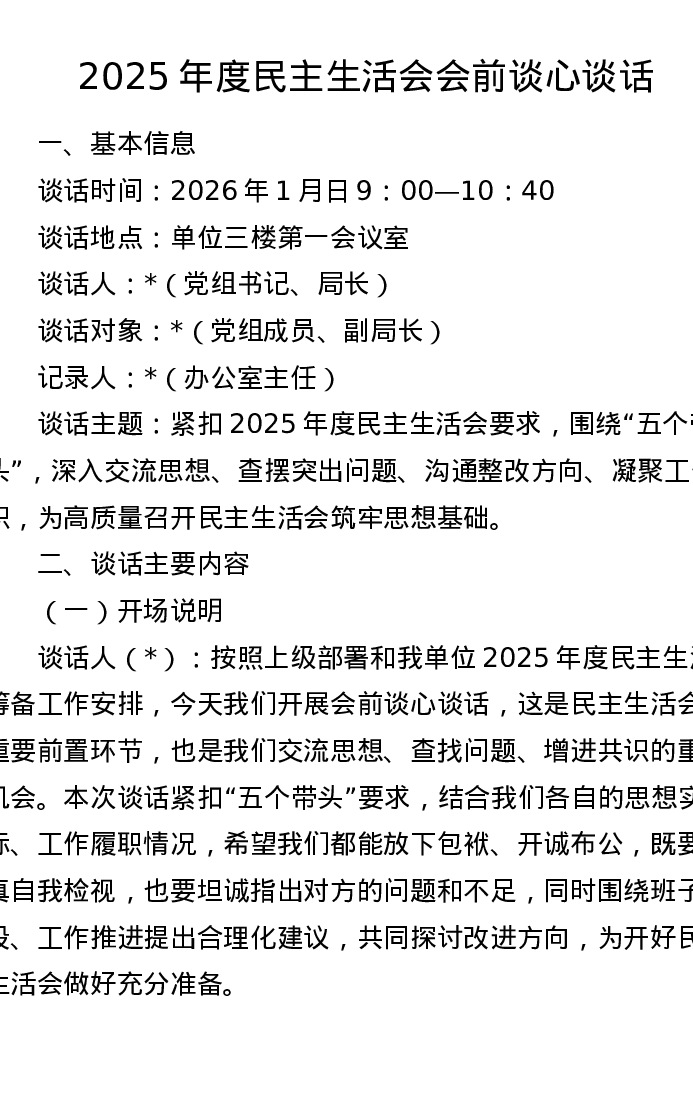 2025年度xxxxx会前谈心谈话
