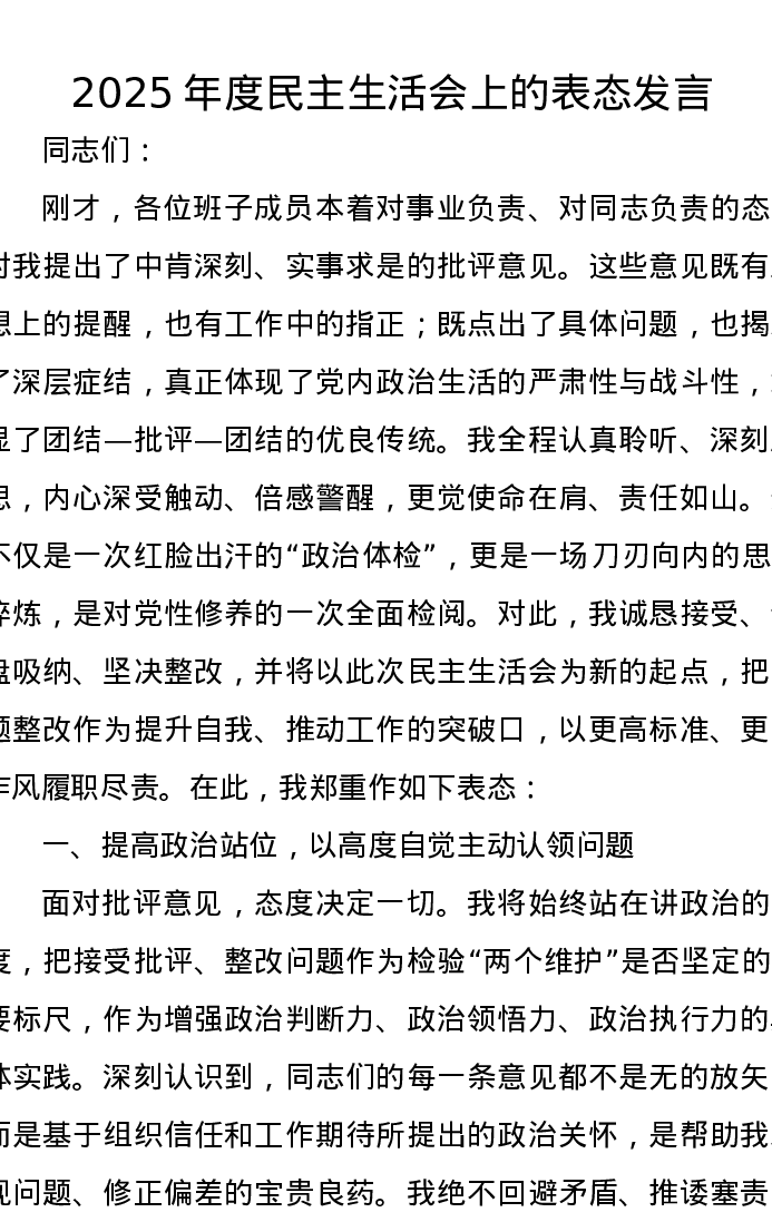 2025年度xxxxx上的表态发言