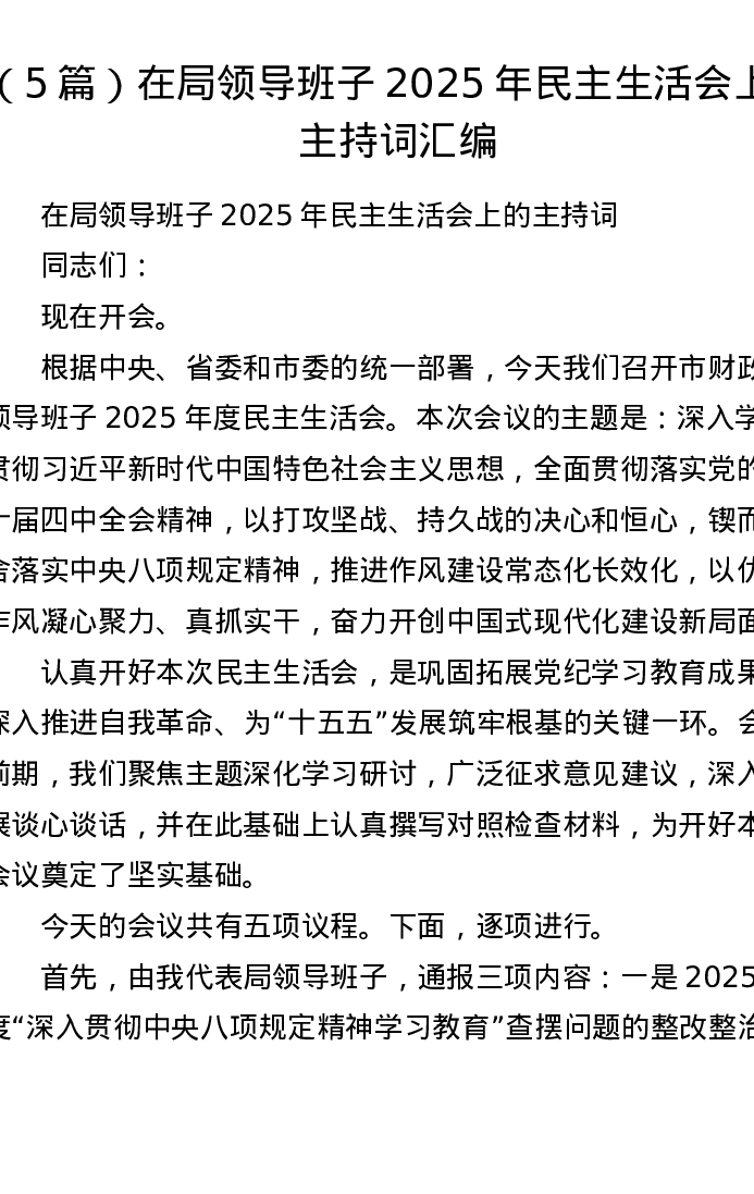 汇编:在局领导班子2025年xxxxx上的主持词5篇