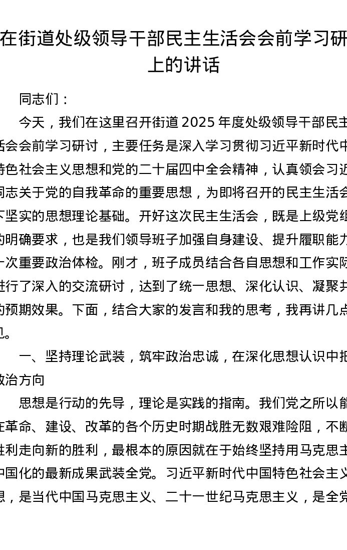 在街道处级领导干部xxxxx会前学习研讨上的讲话