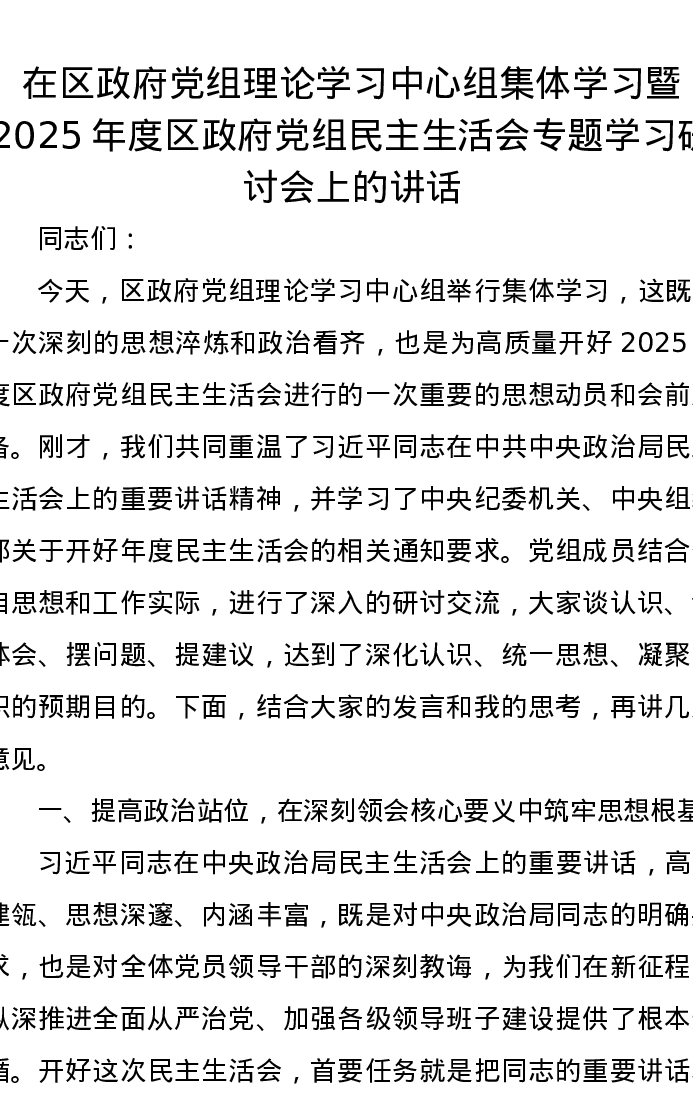 在区政府党组理论学习中心组集体学习暨2025年度区政府党组xxxxx专题学习研讨会上的讲话