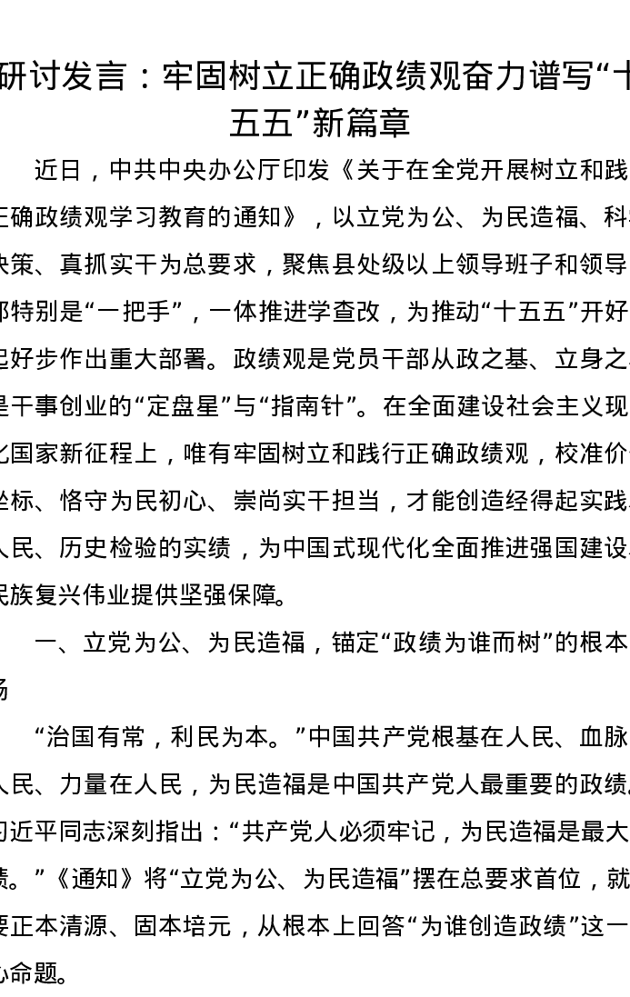 研讨发言:牢固树立正确政绩观 奋力谱写十五五新篇章