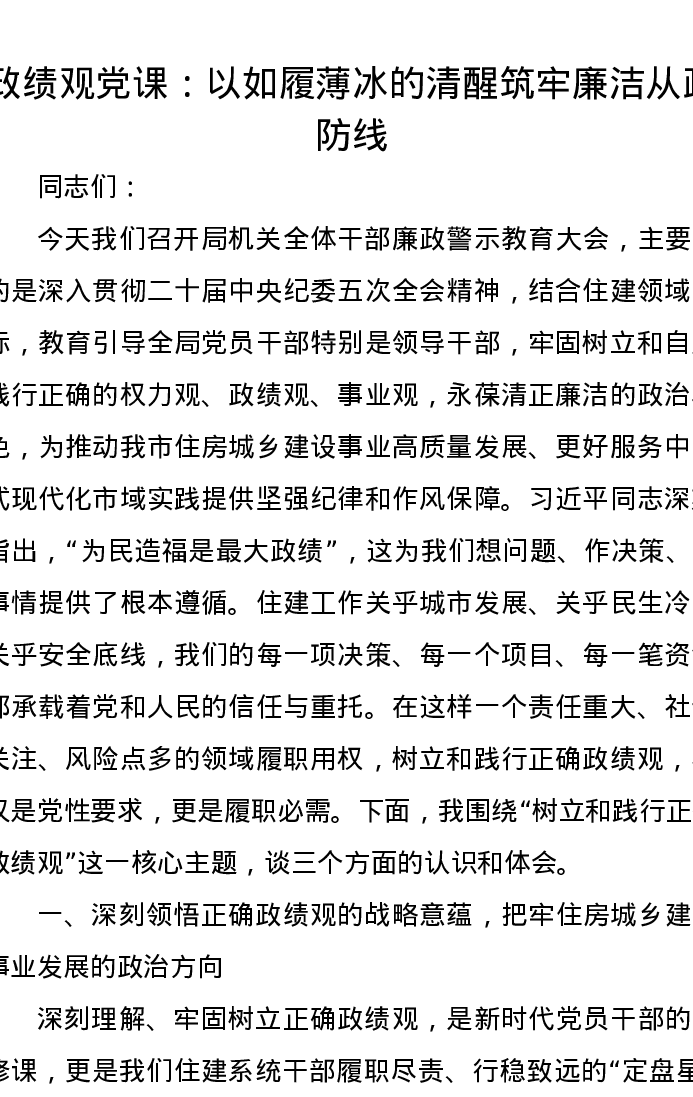 政绩观党课:以如履薄冰的清醒筑牢廉洁从政防线