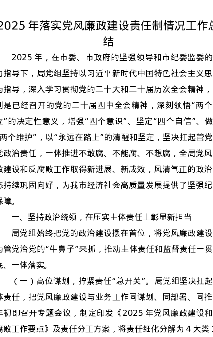 2025年落实党风廉政建设责任制情况工作总结