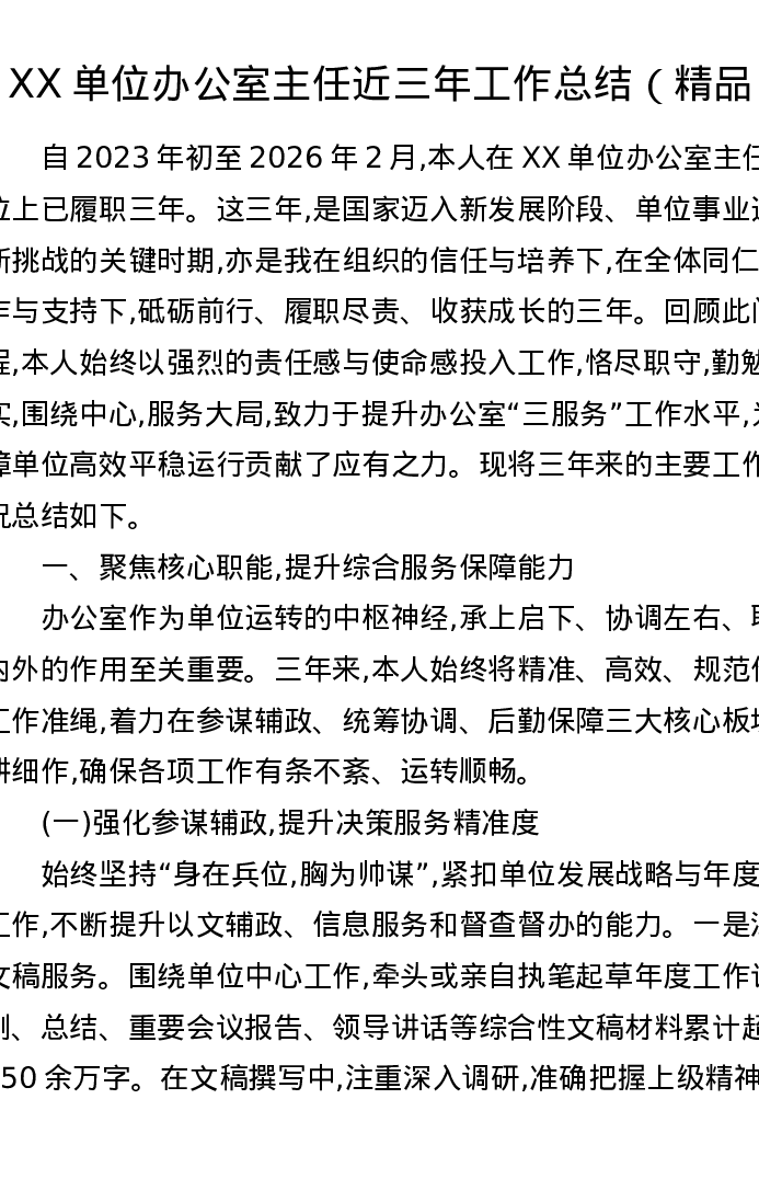 XX单位办公室主任近三年工作总结