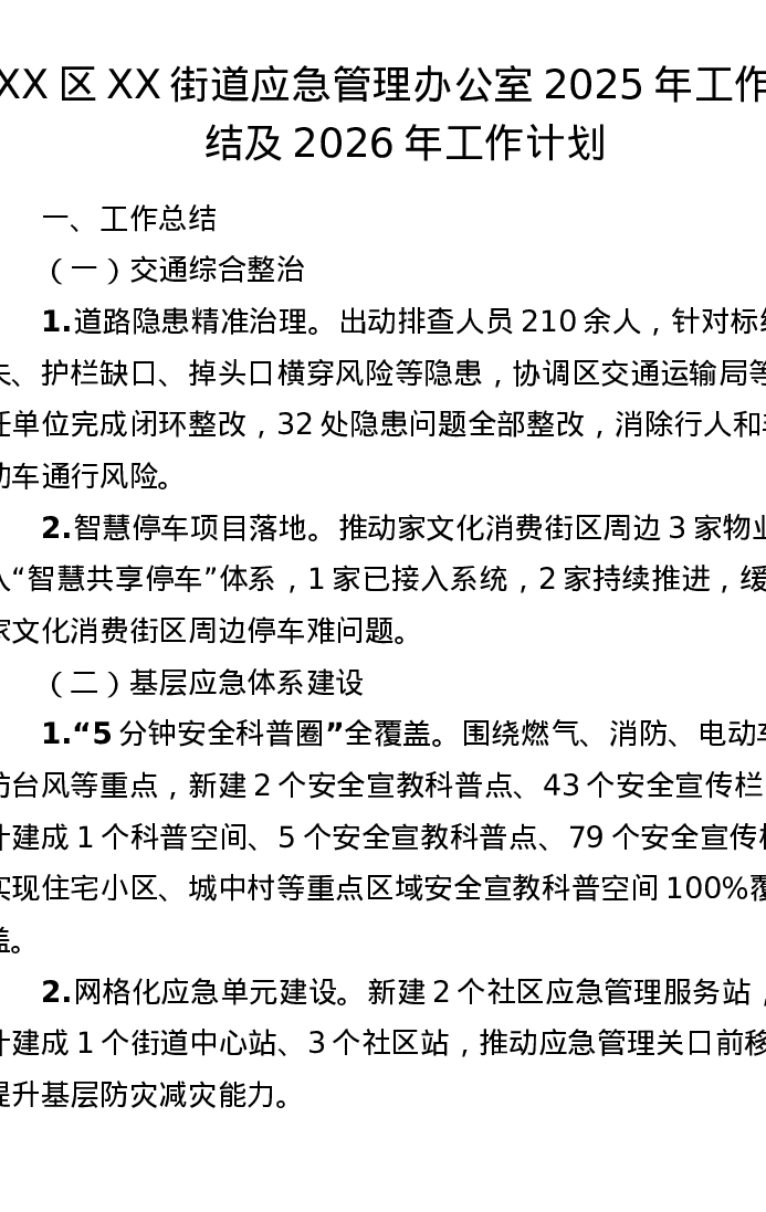 XX区XX街道应急管理办公室2025年工作总结及2026年工作计划
