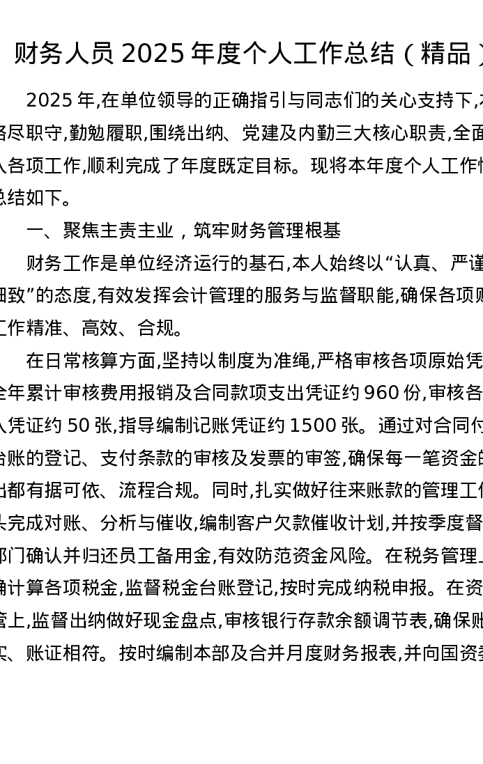 财务人员2025年度个人工作总结