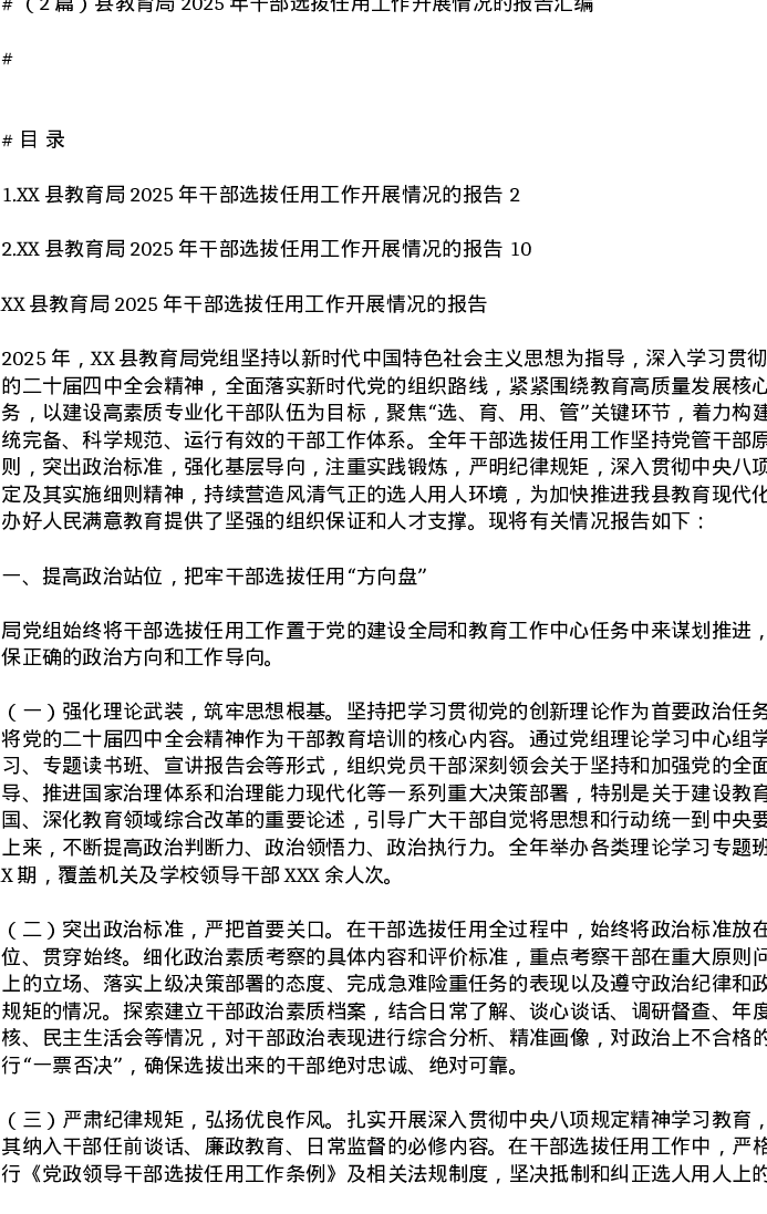 汇编:县教育局2025年干部选拔任用工作开展情况的报告2篇