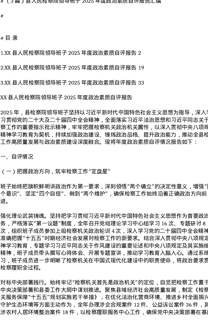 汇编:县人民检察院领导班子2025年度政治素质自评报告3篇