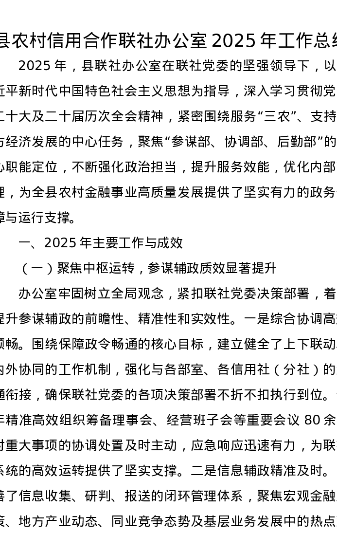 县农村信用合作联社办公室2025年工作总结